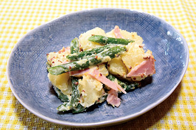① ジャガイモとインゲンを食べやすい大きさに切り、別々に塩ゆでしたあと、ボールに入れておく。