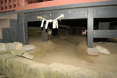 本堂の縁の下には、正面から通り抜けられる道があり、ここをくぐるとハシカが軽くすむといわれています。